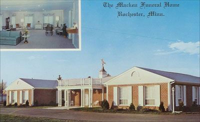 The “Dan Macken Co” , as it was called, included a furniture store and was located at 325 South Broadway (The Northwest corner of Fourth Street and S. Broadway). Later the business was moved to 220 First Ave. SW, by which time the furniture business had been discontinued. The “China Hall” later occupied the First Ave. building. Michael P. Macken a younger brother of the first Dan Macken entered the business shortly after its formation and at the time of his death in 1954 Mike had been a funeral director and embalmer for forty four years. Mike Macken had high-level technical skills and was recognized in the industry for being one of the most talented and respected embalmers in the upper Midwest.Cyril B. Macken another brother of Dan’s entered the business while it was still located on Broadway. Cyril was a partner in the business for about 24 years when he retired and moved to Sacramento, California.
